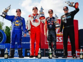 “I want to thank all my sponsors for giving me a chance. I want to thank my team, Daniel Hood who runs my car, and all of my teams. I love what we do. I got to double up with Brittany, so that’s really special,” said Force, who also shared the winner’s stage with daughter Ashley in 2007 when she won in the Sportsman Top Alcohol category.
