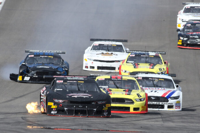 Mosack (No. 28 NicTailor/IFS M1-SLR/Fields Chevrolet Camaro) leads Merrill in the championship by a mere three points. Both drivers have a win on the board for the season. While Merrill has driven the No. 81 HPTuners/MikeCopeRaceCars Ford Mustang to more podium finishes, Mosack’s consistent top-five drives have put him ahead of Merrill in points.