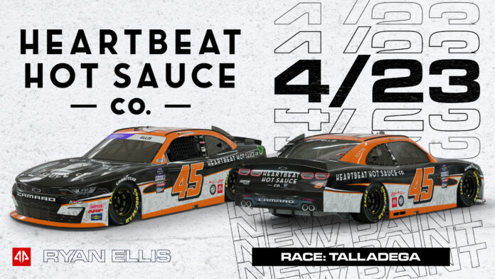 MOORESVILLE, N.C- (January 20th, 2022)- NASCAR Driver Ryan Ellis and Alpha Prime Racing are proud to announce that Heartbeat Hot Sauce will be the primary sponsor for Ellis and the No.45 Chevy Camaro at Talladega Superspeedway for the April 23rd NASCAR Xfinity Series race, the Ag-Pro 300.