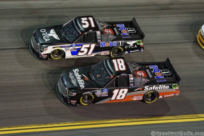 The 2019 season featured Harrison Burton replacing Noah Gragson, who graduated to the Xfinity Series, as the driver of Kyle Busch Motorsports’ No. 18 Toyota Tundra while Todd Gilliland remained as a full-time driver of the No. 4 Toyota Tundra. Meanwhile, the No. 51 Toyota Tundra entry returned as the “all-star” entry that was split between Busch, Eckes, Brandon Jones, Greg Biffle, Chandler Smith, Alex Tagliani and Riley Herbst. The No. 46 Toyota Tundra entry returned for a total of seven events that was split between Herbst, Smith and Raphaël Lessard. In comparison to recent seasons, KBM endured a difficult 2019 season as both Burton and Gilliland did not make the Playoffs. While Burton finished in 12th place in the final drivers’ standings with no victories and 11 top-10 results, Gilliland managed to record his first Truck career victory at Martinsville in October along with 14 top-10 results before settling in 11th place in the final standings. With the No. 46 entry finishing no higher than fourth at Gateway in June made by Chandler Smith, the No. 51 entry won six of the 23-scheduled events: five with Busch and one with Biffle. To go along with a total of 15 top-five results and 17 top-10 results throughout the 23-race schedule, the No. 51 entry managed to capture the 2019 Truck owners’ title as KBM achieved its seventh owners’ championship in NASCAR.