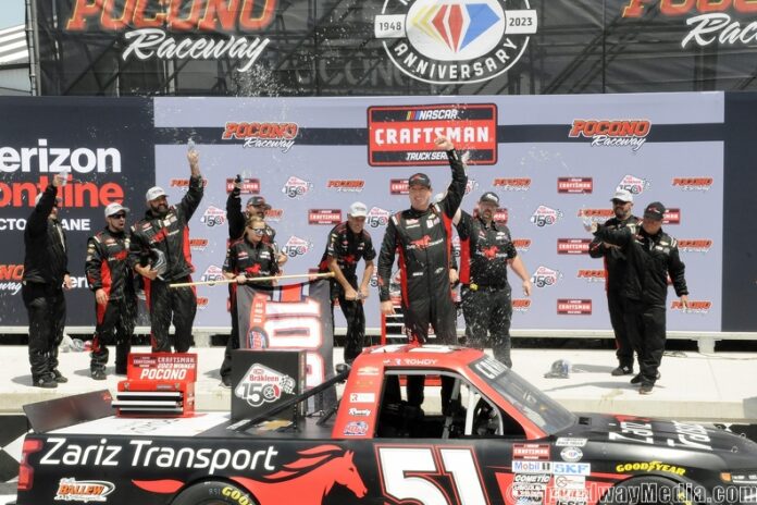 “It’s a monumental day,” Busch added. “It’s a century mark of being able to win 100 Truck races. We’re, granted, a small team and just one that performs in the Truck Series. We ventured away once upon a time and didn’t quite work, but we found a home in the Trucks. It’s cool to always score a victory and another nice one here at Pocono.”