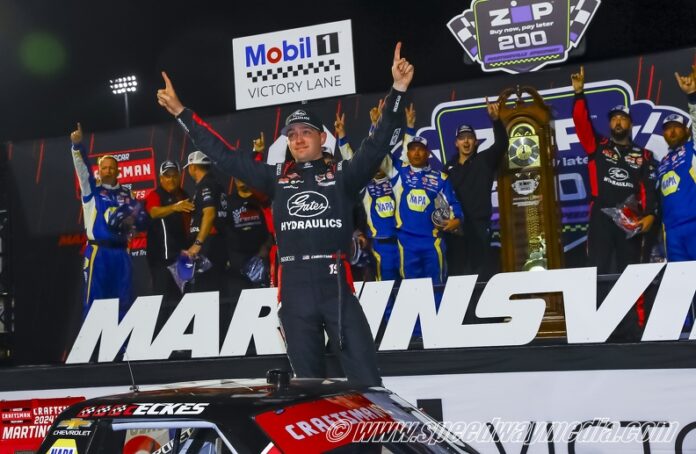 Christian Eckes capped off a dominant run by pulling a late bump-and-run move on Playoff rival Taylor Gray that enabled him to clinch a Championship 4 berth after winning the Zip Buy Now, Pay Later 200 at Martinsville Speedway on Friday, November 1.
