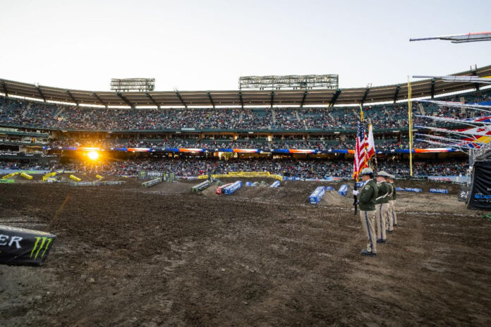 The Anaheim broadcast began with a heartfelt message from play-by-play commentator Leigh Diffey, “And as we come on the air, the people of the Los Angeles area are still dealing with the extreme wildfires that ravaged the region this week… And our thoughts are with all who have been affected. And tonight, here in Anaheim, not too far down the road, hopefully the sport of SuperMotocross can serve as a source of light entertainment for those seeking it, and perhaps needing it.” A second message during the event encouraged fans to support the Red Cross’ disaster relief efforts by going to redcross.org, by calling 800-RED-CROSS, or by texting REDCROSS to 90999.