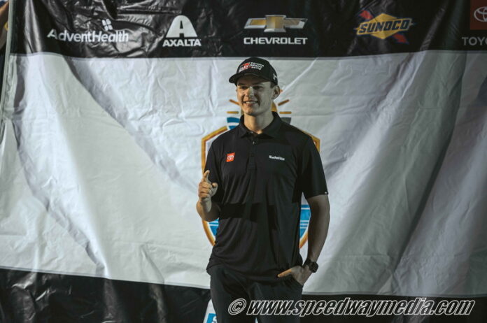 Earlier, the 34-year-old Kligerman from Westport, Connecticut, muscled ahead of pole-sitter Ben Rhodes and the field on the final lap. Kligerman’s launch to the front was made after he received a strong push from Johnny Sauter through the backstretch during a 12-lap shootout to the finish. Then as a multi-truck wreck ensued exiting the backstretch, Kligerman maintained the lead ahead of Corey Heim just as the event concluded under caution and was left celebrating the biggest victory of his career on the frontstretch.