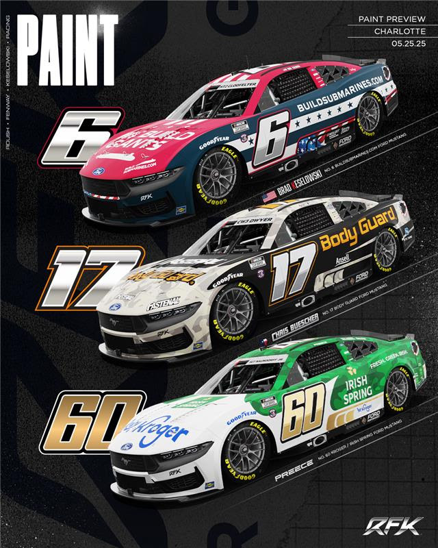 - Tale of the Tape: RFK has started 222 NCS races at Charlotte, recording eight total wins with 47 top-five and 83 top-10 finishes. RFK Fords have an average finish of 16.4 with 2640 laps led all-time.