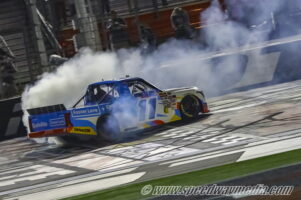 “Honestly, [it’s] just nice to be far enough away where someone can’t clean me out, to be honest with you,” Heim said on the frontstretch on FS1. “[I’m] Just super thankful for TRICON Garage, Toyota, Safelite. This [No. 11 truck] was obviously really good. I felt like we’ve had the speed the last couple years here. Just circumstantially haven’t been able to get it done, so obviously, just such a good truck. [I] Had to execute my part. Pit crew did a great job. [Tonight was] Just a really nice clean day. Pumped up about this one. [I] Felt like we gave a couple away the last two weeks, but [we] redeemed ourselves tonight.”