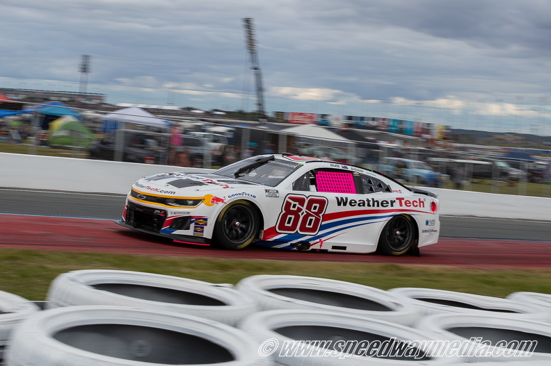 Then with 23 laps remaining, van Gisbergen, who had been reeling in Larson for the lead, overtook Larson as he returned atop the leaderboard. As van Gisbergen led the next lap, Chastain pitted along with Todd Gilliland under green. Shortly after, Chastain was penalized for speeding on pit road.