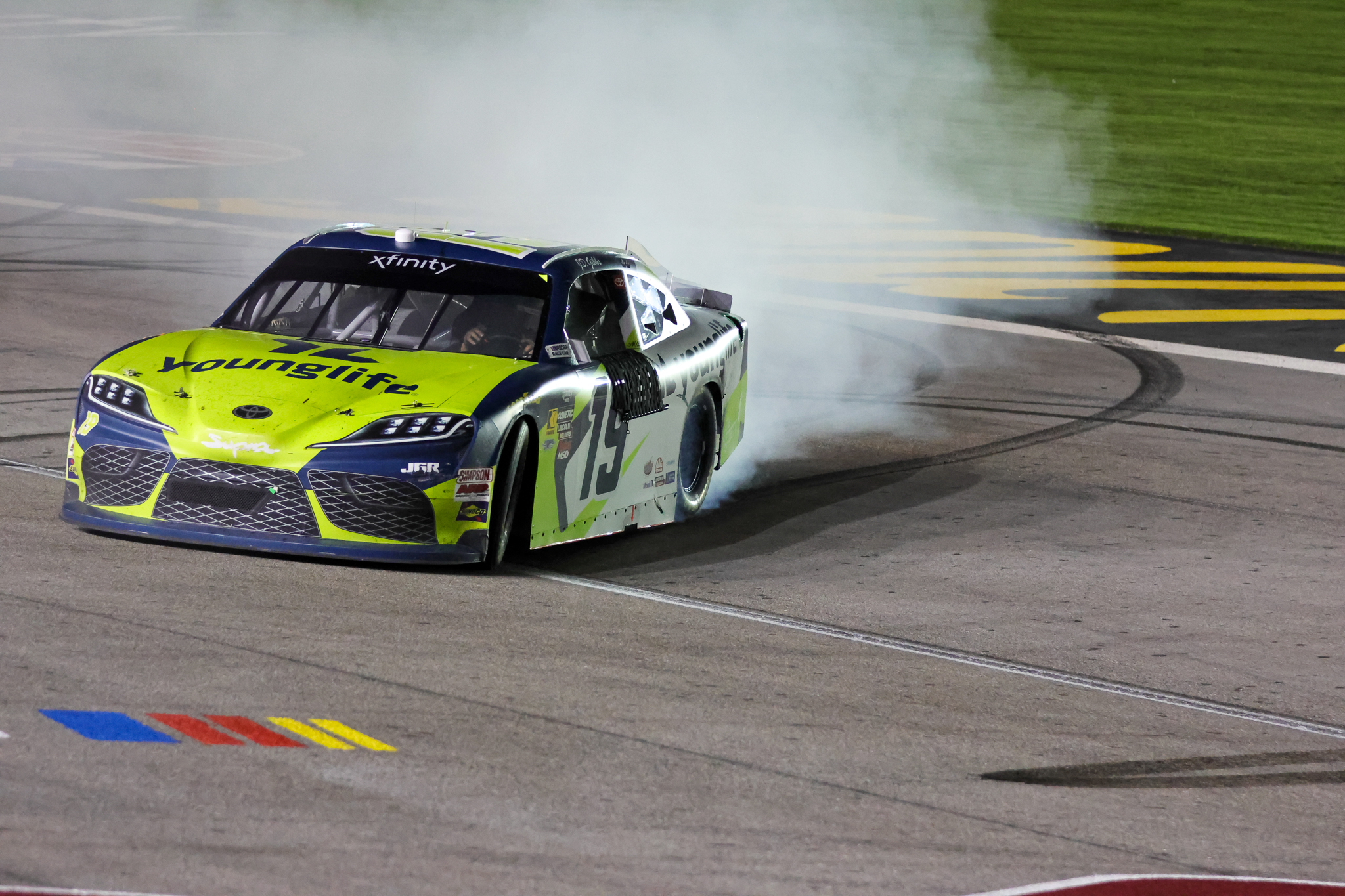 Aric Almirola led 107 of the 201 laps and took over the race lead from Connor Zilisch with nine laps remaining to win Saturday night’s NASCAR Xfinity Series Playoff race at Las Vegas Motor Speedway by .696 seconds.