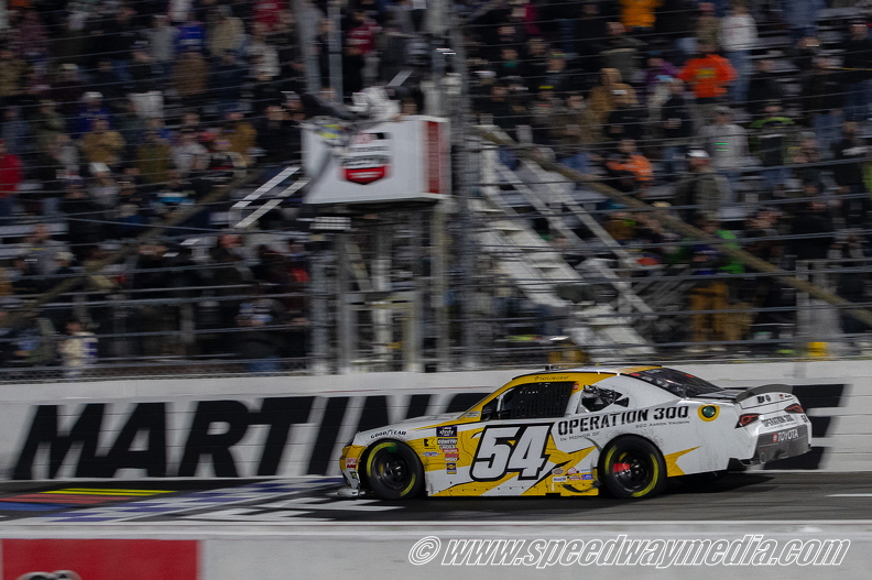 “Gosh, [it’s] about damn time I get me a clock, baby!” Gray exclaimed on the frontstretch on the CW Network. “Man, I cannot thank everybody on this No. 54 team. Such an awesome race car. [Crew chief] Jason Ratcliff, all these [No. 54] guys, the pit crew did an awesome job tonight. Everybody on this group bring awesome race cars to this racetrack and gave me an opportunity to race every time I come here.”