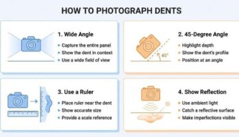 - Angled shots that reveal reflections; these help assess the feasibility of crease dent removal