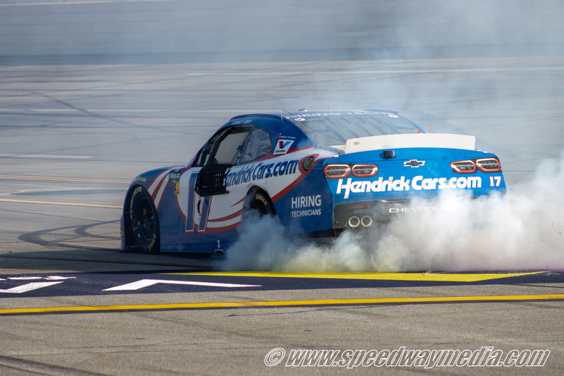 “I sure as hell didn’t think [my first win] would be at a superspeedway,” Day said in Victory Lane on the CW Network. “It’s awesome. The Hendrick Legacy is so strong at superspeedways. My No. 17 guys just build me a rocket ship. Hats off to [crew chief] Adam [Wall]…everyone back at the shop that builds these things every week for me. I feel like we’ve been close. [I] Had a good day at Rockingham and had a couple of other good days, and just didn’t finish it off. It’s super cool.”