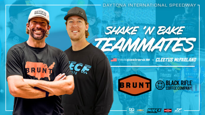 Charlotte, NC. (February 5, 2026) – BRUNT Workwear, the fastest-growing work boot and apparel company for trade workers in the U.S., and Black Rifle Coffee Company, a veteran-founded, mission-driven premium beverage company, will bring together motorsports icon Travis Pastrana and digital racing phenomenon Cleetus McFarland to race as teammates in the NASCAR CRAFTSMAN Truck Series season-opening Fresh From Florida 250 at Daytona International Speedway on February 13.