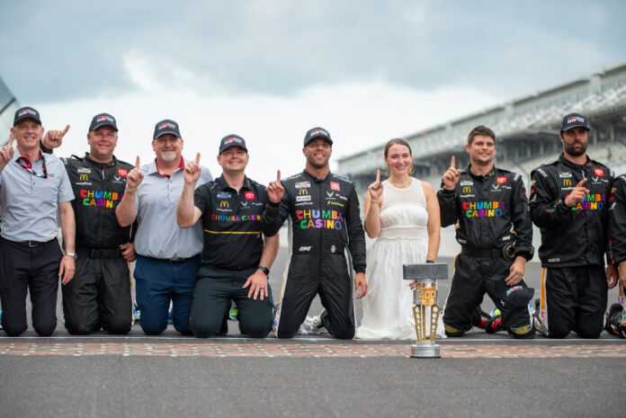 Kyle Larson, who led 19 laps and was striving to become the fourth competitor to win back-to-back Brickyard 400s, settled in second place while Denny Hamlin, Bubba Wallace’s co-owner at 23XI Racing, settled in third place after the latter rallied from starting at the rear of the field in a back-up car.