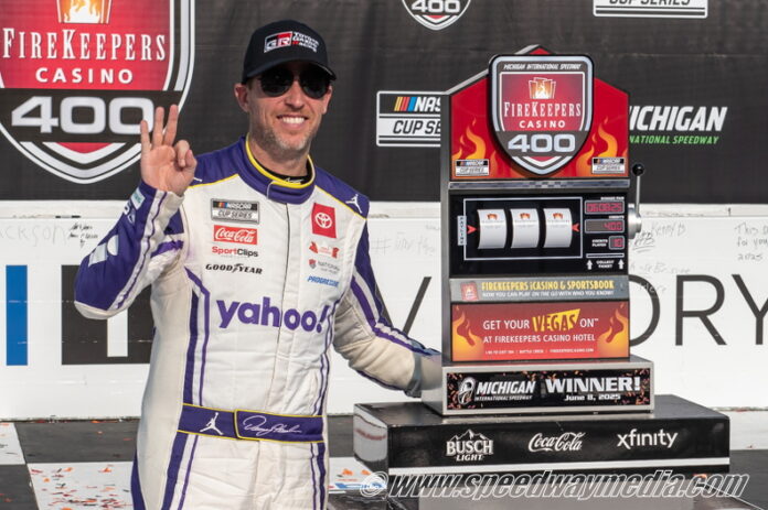 Denny Hamlin executed a late fuel-mileage battle to a victory to perfection. The result enabled him to win the Firekeepers Casino 400 at Michigan International Speedway on Sunday, June 8.
