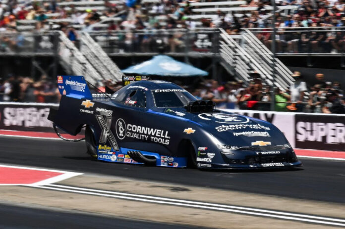 AUSTIN PROCK, DRIVER OF THE CORNWELL TOOLS CHEVROLET SS FUNNY CAR FOR JOHN FORCE RACING: “Frustrating day. The car just came loose over the bumps, and I just wasn’t able to catch it in time. We have all these safety parameters on these things now and that bit us because the safety system shut the car off and I was just coasting.