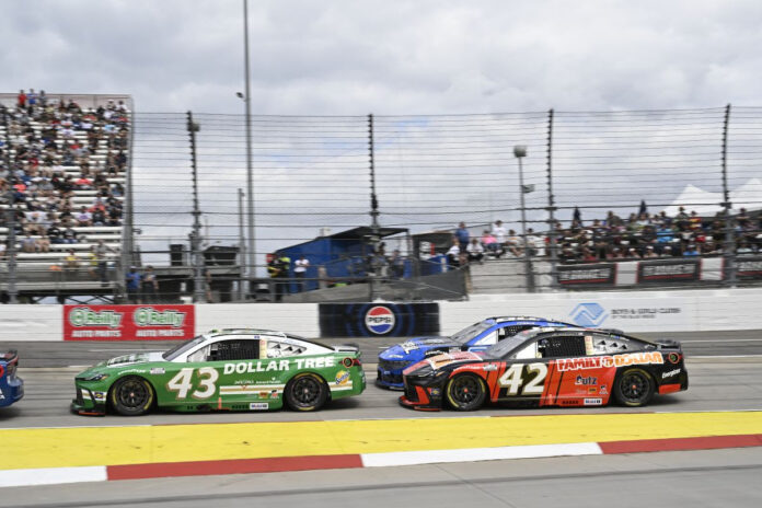 RIDGEWAY, Va. (March 30, 2025) – The NASCAR Cup Series visited Martinsville Speedway for the first time this season. The No. 42 Family Dollar Toyota driven by John Hunter Nemechek rolled off in 16th while teammate Erik Jones in the No. 43 Dollar Tree Toyota started in the 31st postion. It was Denny Hamlin who was victorious at “The Paperclip”.