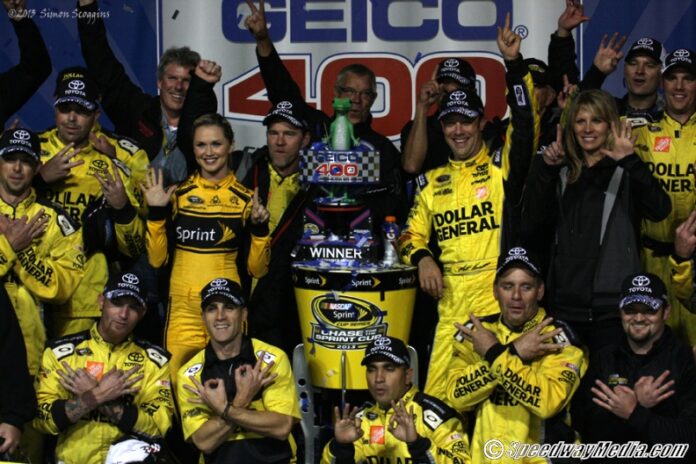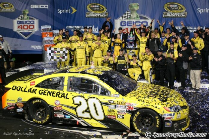 JGR racer Matt Kenseth scored his first ever win at Chicagoland and his career best sixth win for the season while Kyle Busch missed the weekend sweep by just one position, bringing his JGR Toyota home in the second spot.