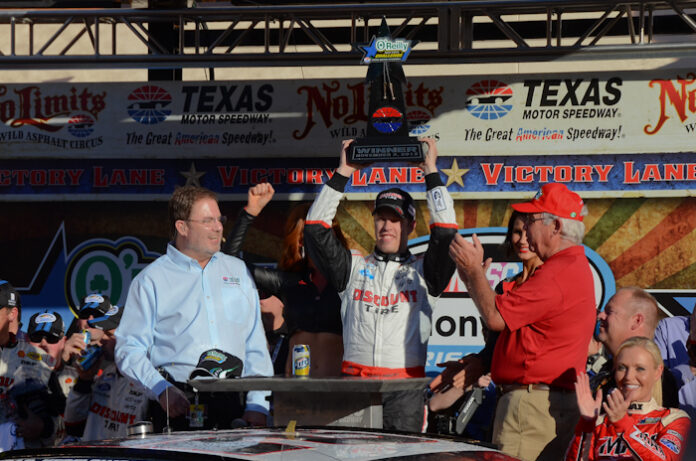 Brad Keselowski would take the lead with 15 laps to go and never looked back as he held off Denny Hamlin to grab the win at Texas Motor Speedway.