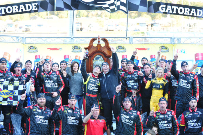Gordon led a total of 78 laps and passed Matt Kenseth in the closing laps en route to victory. As he pulled into victory lane, his No. 24 Drive to End hunger Chevrolet looked like a war torn relic, beaten and battered from another Martinsville battle. A battle that was slowed by 17 cautions, signifying how rough and tumble the racing was today.