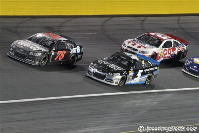 Caution 67 to go Johnson sideways off of turn four, Kenseth into wall behind while Montoya spins, also. Johnson spun while underneath Truex….Montoya hit Kenseth, Menard into Montoya.