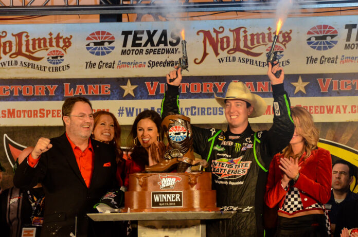 In the end, it was a familiar face at the front of the field as Kyle Busch would pick up the victory in the NRA 500 to pick up the Texas sweep as he won the Nationwide Series event on Friday night. It marks his second sweep of the year. It marks the 26th victory of his Sprint Cup Series career, his first victory at Texas though.