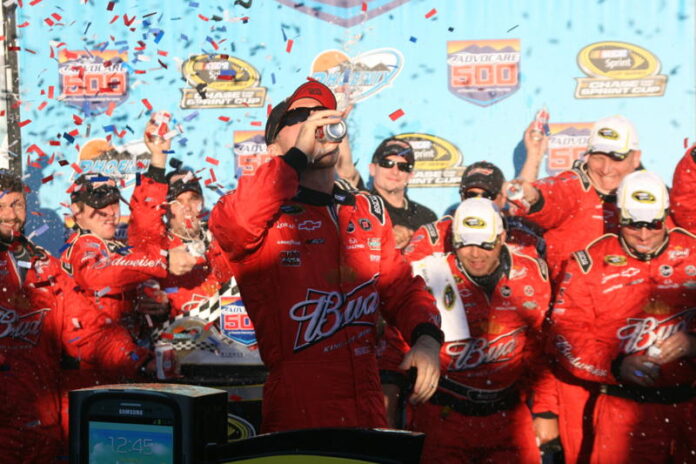 Kevin Harvick took the checkered flag as Mark Martin, Ryan Newman, Brad Keselowski, Kurt Busch, and Paul Menard all crashed across the finish line. Harvick stated afterwards that, “There was more oil than asphalt and it was very visible.” Richard Childress, who was sitting next to Harvick said, “It was dangerous.” Harvick also chimed in that the people officiating the race, “Need to go look themselves in the mirror and check if they are really doing a good job.”