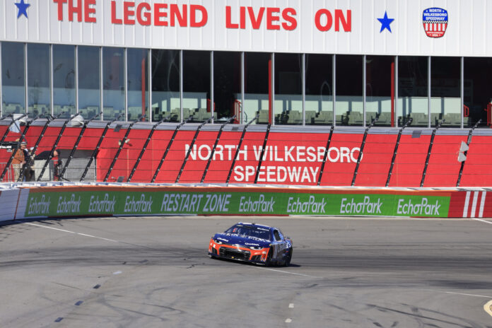 NASCAR conducted a Cup Series test session today at North Wilkesboro Speedway, where the first series points race in 30 years will be held at the track on July 19. Ford Mustang Dark Horse drivers Joey Logano, Zane Smith and Josh Berry visited the infield media center and discussed what they hope to learn, along with their thoughts on the new championship format that was announced yesterday.