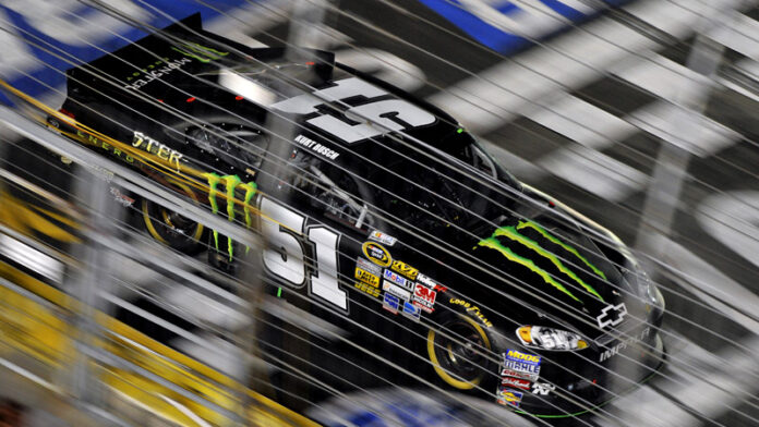 AJ Allmendinger put his No. 22 Pennzoil Dodge on the pole; however, as the field was coming out of Turn 4 to take the green-flag, Allmendinger was forced to pit for a flat left front tire. This moved Allmendinger to the back of the field, remaining on the lead lap. Allmendinger’s loss was Dale Earnhardt Jr’s gain. Because of Allmendinger’s misfortune, Earnhardt took over the pole position, with Martin Truex Jr. starting in second. Earnhardt looked like a bullet shot out of a gun when he jumped out to a 1.398 second lead over Truex within three laps of the green-flag.