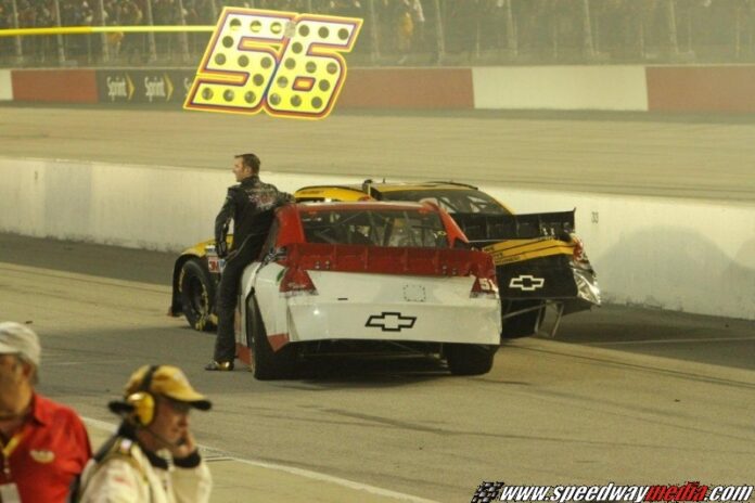 We got our good, we got our bad, so let me introduce you to ugly. Kurt Busch had another one pop in the old fuse box in the Southern 500. After a late wreck that had him put Ryan Newman into the fence and bust his own car up, Busch hit the pits. In leaving, he hit the gas, peeled through Newman’s pit box on his way out, and ticked off some big boys. As the cars were lining up to head to the garage after the race, Busch hit Newman’s car again.