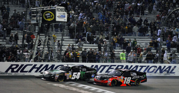 [/media-credit]“To have Kurt do it, doesn’t bother me one bit,” Kyle says. “It’s just an awesome feeling for myself, for (wife) Samantha, for grandma, for my dad. This is really cool. All of these guys at Kyle Busch Motorsports – great job. This is the most emotional I have been for a win. This is cool.
