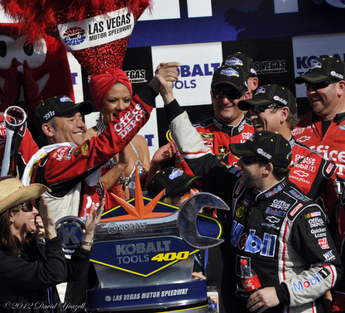 [/media-credit]When the dust had cleared at Las Vegas, Sunday had featured two folks in my opinion. One was Tony Stewart, who won this early in the season way back in…well, never. He drove like a demon to take his one, beating his own standard when he claimed Atlanta in 2002, the fourth race of that campaign. Stewart has finished second at the Daytona 500, but no wins have ever come his way this early.
