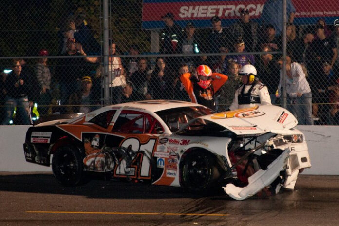 “No, I wasn’t worried at all,” he said. “I had seen racecars run good at short tracks before and I figured we had all night to fix it. I felt like if we were a good enough team, we’d get the job done. Brad had to run his ass off to win the race, to run in the top five to make it tough on us. He almost did that, but I felt good. I knew my team could fix the car good enough and if everything fell the right way for us as far as cautions and getting them lucky dogs, getting an opportunity to work on the car, we’d be fine.”