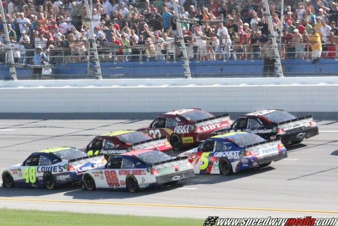 [/media-credit]It has been the topic of controversy ever since it was implemented in 2001 and it is causing more controversy today after the end of the Aaron’s 499, which had Jimmie Johnson crossing the line for his 54th career victory by 0.002 seconds, tying the 2003 Carolina Dodge Dealers 400 for the closest finish in NASCAR history. However there is some controversy that comes along with the win.
