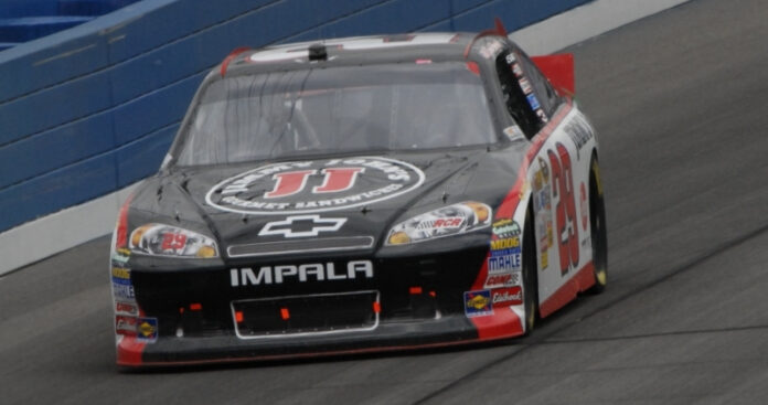 On the back stretch Harvick would tap the back of Johnson’s car several times to upset the corner entry for Johnson in turn three. Harvick continued his ride on the outside through turns three and four and pulled ahead of Johnson.