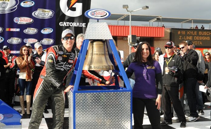 After taking his famous ceremonial bow in front of the fans after the race, Busch parked his Z Line Design/Joe Gibbs Racing Toyota in the Auto Club Speedway’s Gatorade victory lane and said “we stole this one. We don’t deserve it, actually I should say the car doesn’t deserve it.” Commenting on his final green flag stop of the race, Busch said the credit goes to Jason, (Ratcliff). He told me we’re not going to win this race taking four tires. Let’s gamble and take two.”