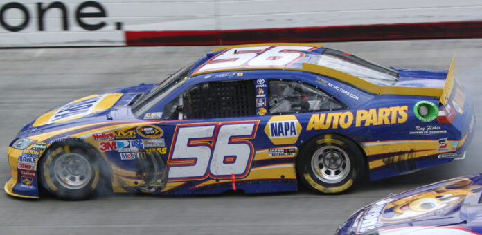 [/media-credit]Instead the driver of the No. 56 Napa Auto Parts Toyota Camry is pressing onward, waiting for his time to come. It’s not as if his Michael Waltrip Racing team is that far off, entering the Jeff Byrd 500 at Bristol he sat seventh in points and felt momentum was on his side.