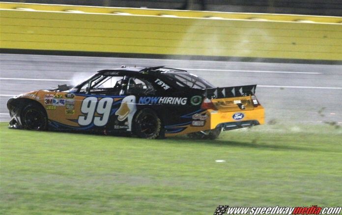 [/media-credit]At Charlotte, the No. 99 Aflac team was not about to let another big one slip through their fingers. Right from the green flag it was clear that the man to beat would be Edwards as he quickly marched to the top three were he would remain the rest of the night. Kyle Busch, who finished second, knew that once Edwards got out front there was no catching him.