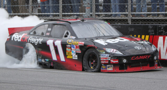 The thought of racing at Martinsville Speedway brings a variety of thoughts from a lot of NASCAR Sprint Cup drivers. It’s safe to assume that Denny Hamlin loves this speedway. The driver of the #11 Fed Ex/Joe Gibbs Racing Toyota has 11 starts at Martinsville and his personal stats there are simply awesome. They include four wins, including the last three consecutive races, ten top ten finishes and a very healthy average finish ratio of 6.0. There is also a strong sense of home whenever Hamlin races at Martinsville. His home town of Chesterfield is just a short drive from the race track.