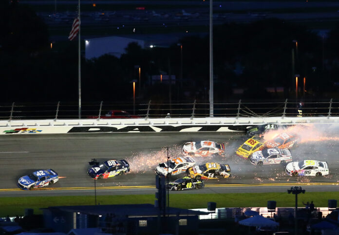 Keselowski’s car turned up the track, clipped Kurt Busch’s car and slammed into the outside wall, going into Turn 3. Chase Elliott t-boned him, veered down into the path of Denny Hamlin, which gaggled up Clint Bowyer, Joey Logano and Daniel Suarez.